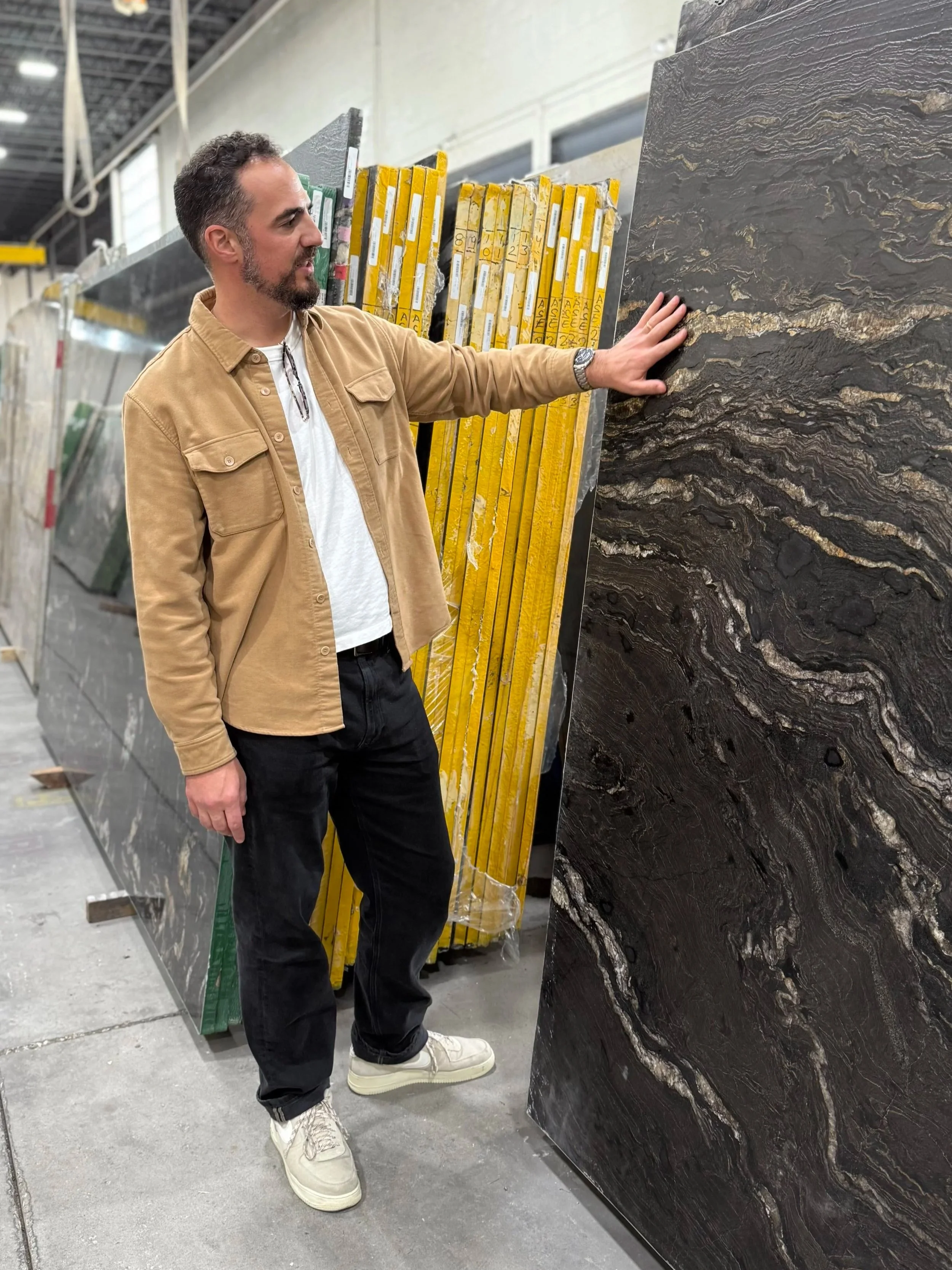 Sourcing leathered quartzite for a handsome wet bar in the dining room of a 1920s Spanish revival home. We want any new materials to complement the original moody details.