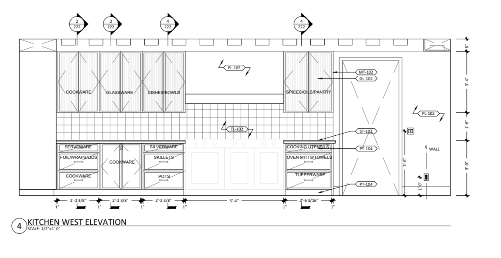 The elevation of a kitchen where the existing range was staying in the same place. Here’s a photo of the resulting kitchen: